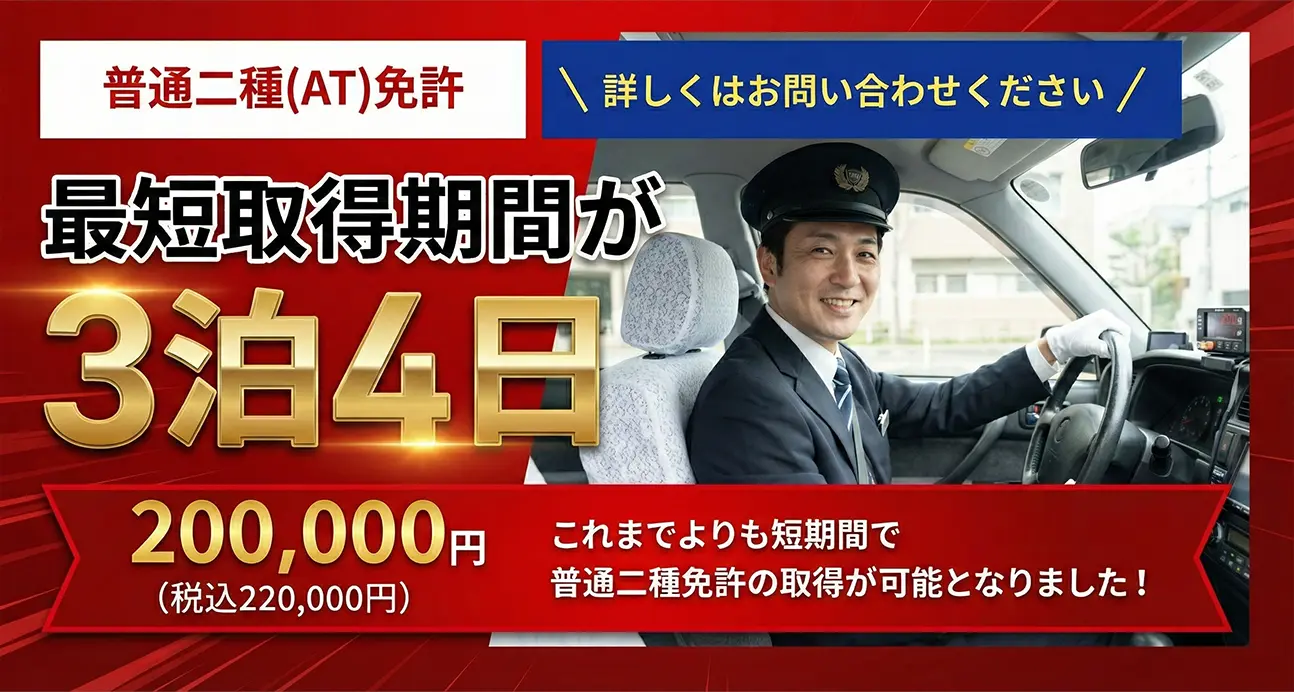 ※普通車限定。4/1〜6/30,10/1〜12/31の期間の入校限定